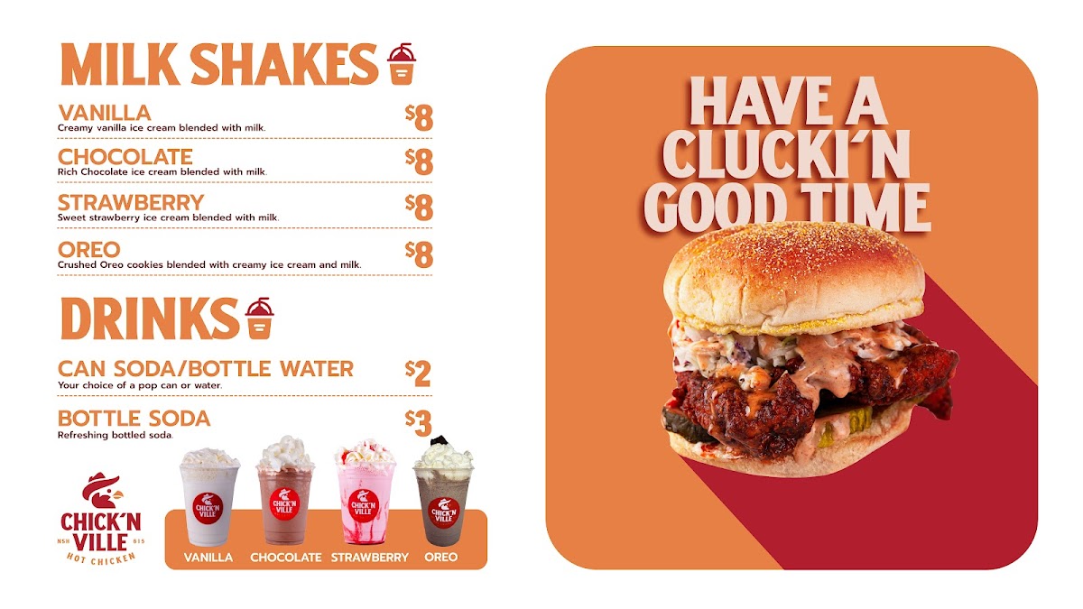 Chick’n Ville’s menu offers a straightforward and inviting selection centered around crispy fried chicken and satisfying fast-food favorites. The style strikes a balance between casual bites and comforting, flavorful meals—perfect for a quick lunch, casual dinner, or a relaxed takeaway option when you need something familiar yet full of character.
